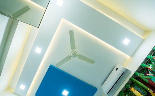 PVC, or Polyvinyl Chloride, is a plastic material used in ceiling tiles and panels. It's lightweight, water-resistant, and available in a range of designs. PVC ceilings are easy to install and maintain, making them a popular choice for kitchens and bathrooms.