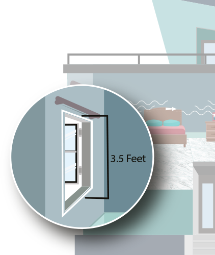 चांगल्या व्हेंटिलेशनसाठी कमीत कमी 3.5 फूटाच्या